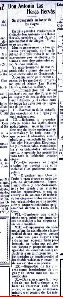 Mientras estuvo en Colombia, procuró visitar el Instituto para ciegos y el instituto de ciegas y sordomudas de Bogotá. Todas estas experiencias le inspiraron el deseo de luchar porque sus hermanos ciegos de El Salvador pudieran contar con un lugar donde poder educarse y ser así personas útiles a la sociedad.